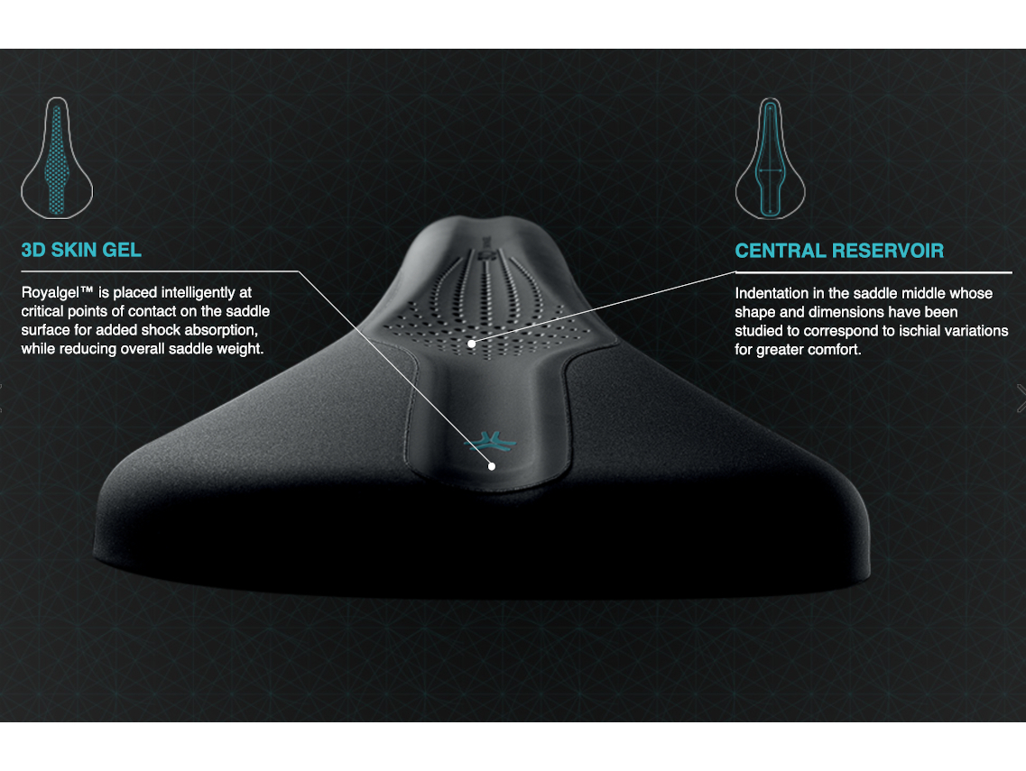 3D Skin Gel – Royalgel is placed intelligently at critical points of contact on the saddle surface for added shock absorption, while reducing overall saddle weight.