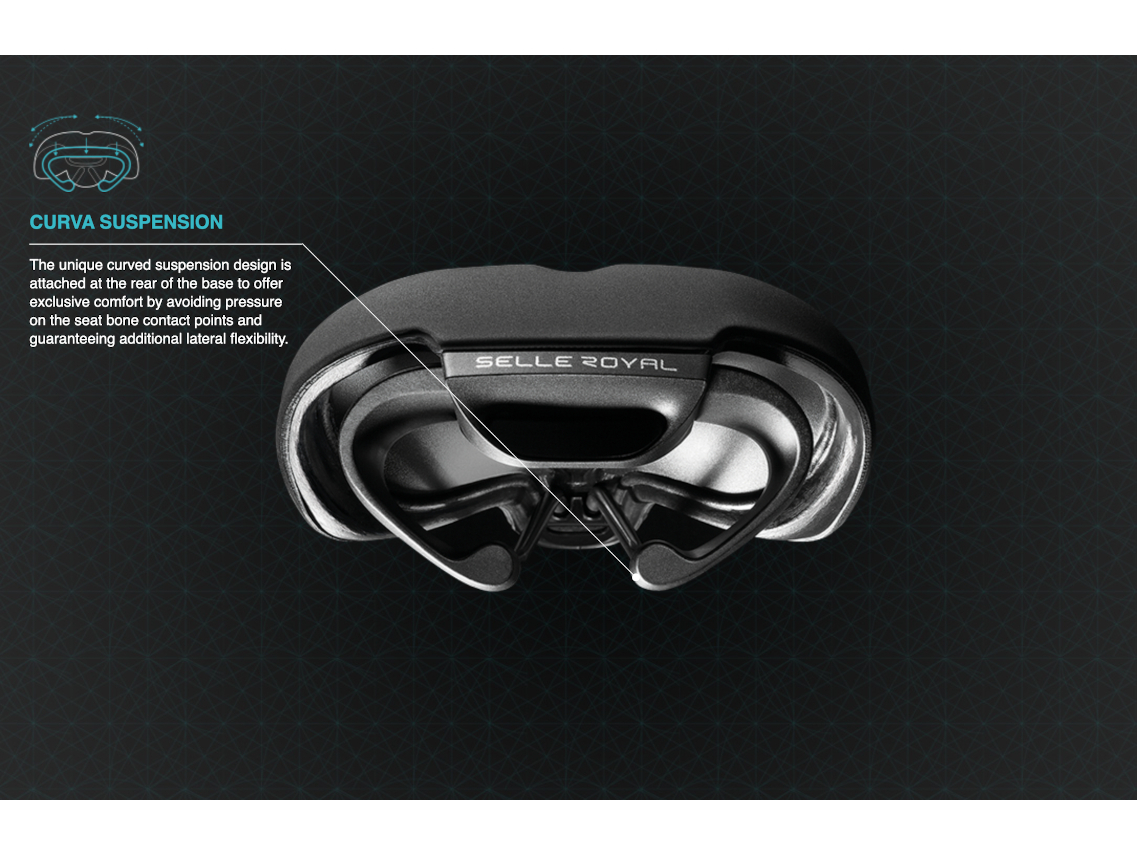 Advanced 3D Skingel technology and a Central Reservoir relieve pressure, while pedaling comfort is facilitated by the exclusive Curva Suspension system.